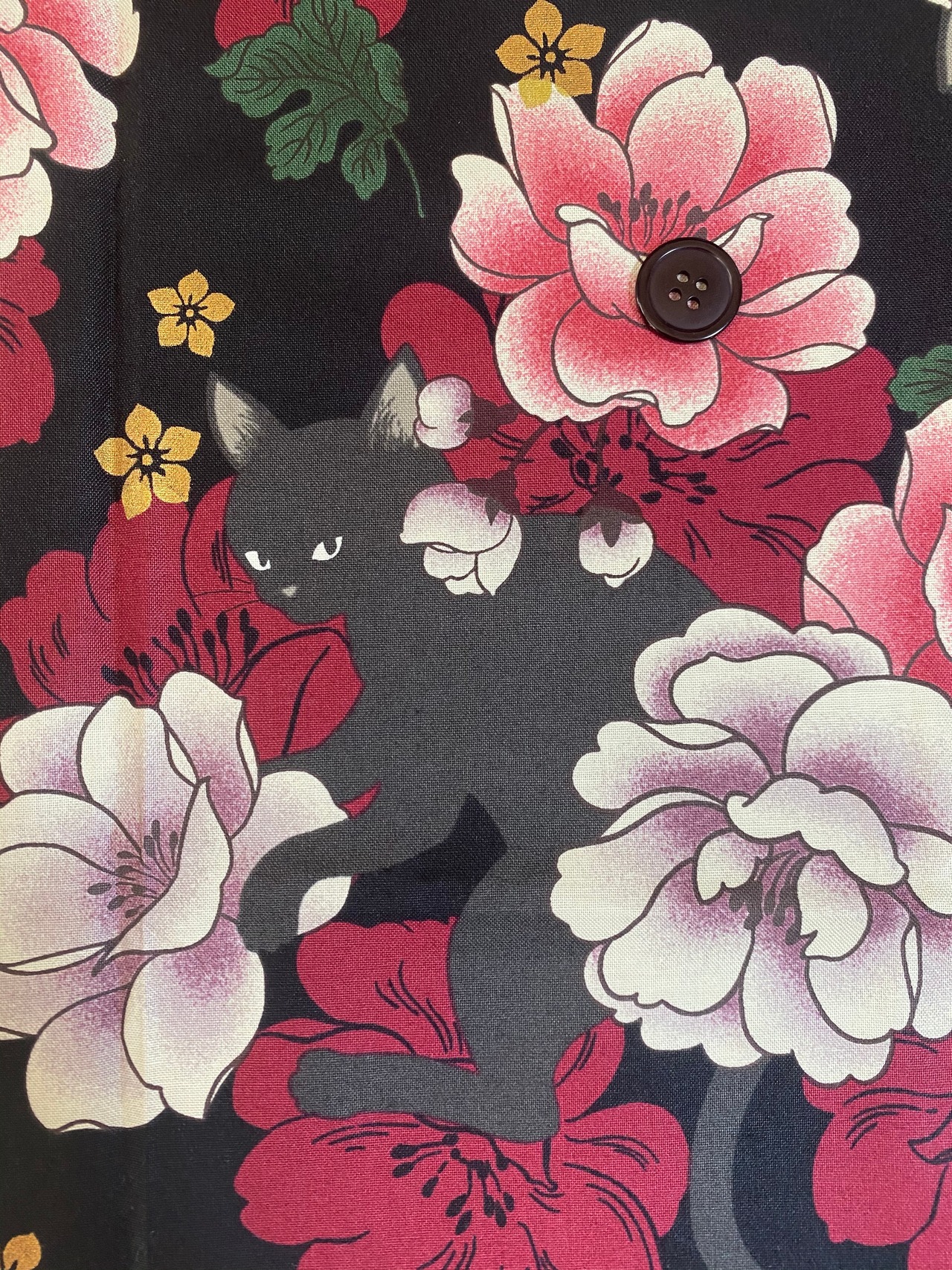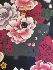 黒猫と牡丹(パープルグレー)