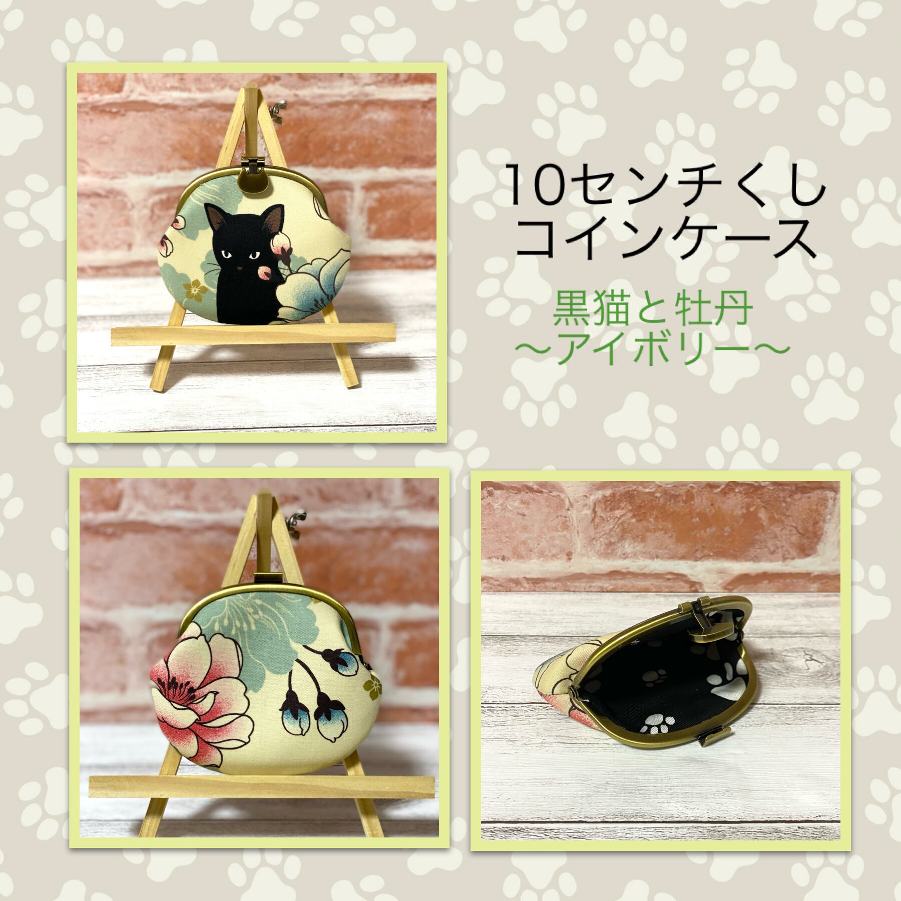 黒猫と牡丹(アイボリー)
