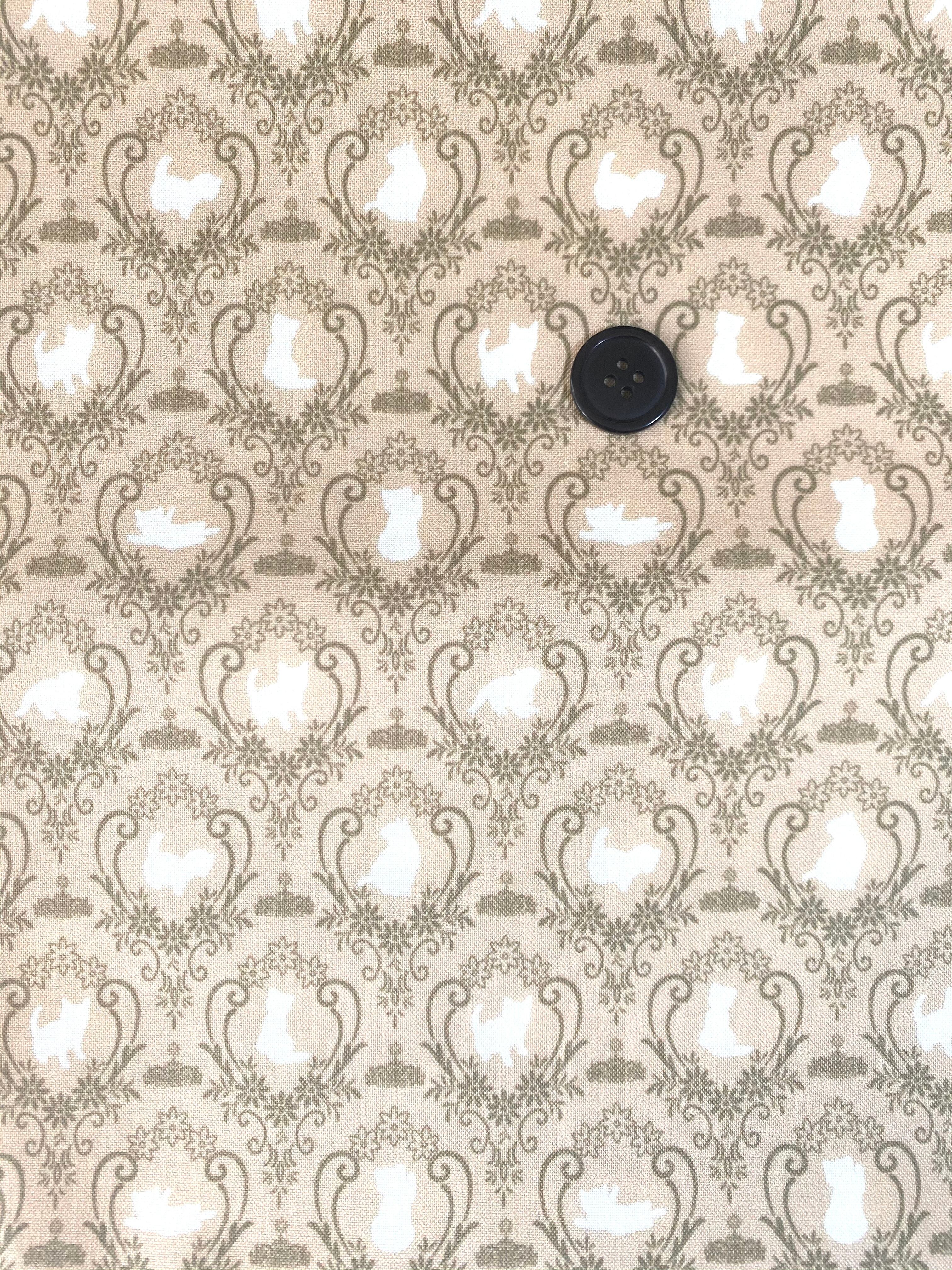 一緒に置いている黒いボタンは直径2センチです。 生地選択の際の目安にしてください。